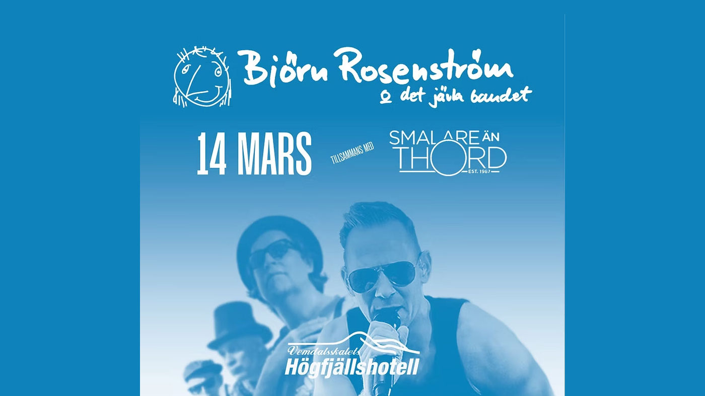 Vemdalsskalets Högfjällshotell välkomnar Björn Rosenström tillsammans med Det Jävla Bandet och hyllade coverbandet Smalare än Thord för en sprakande after-ski och kväll