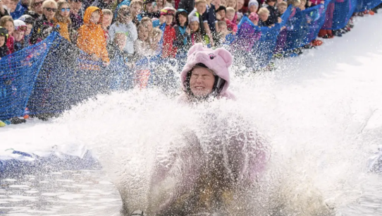 Kom och se när personalen kastar sig utför backen i full utklädnad och landar årets första dopp i Dammracet i Björnidets damm. Stor show och många skratt utlovas!