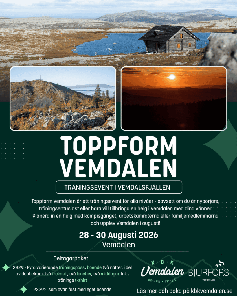 Träningshelg i Vemdalen med pass i fantastisk fjällmiljö, för alla nivåer.