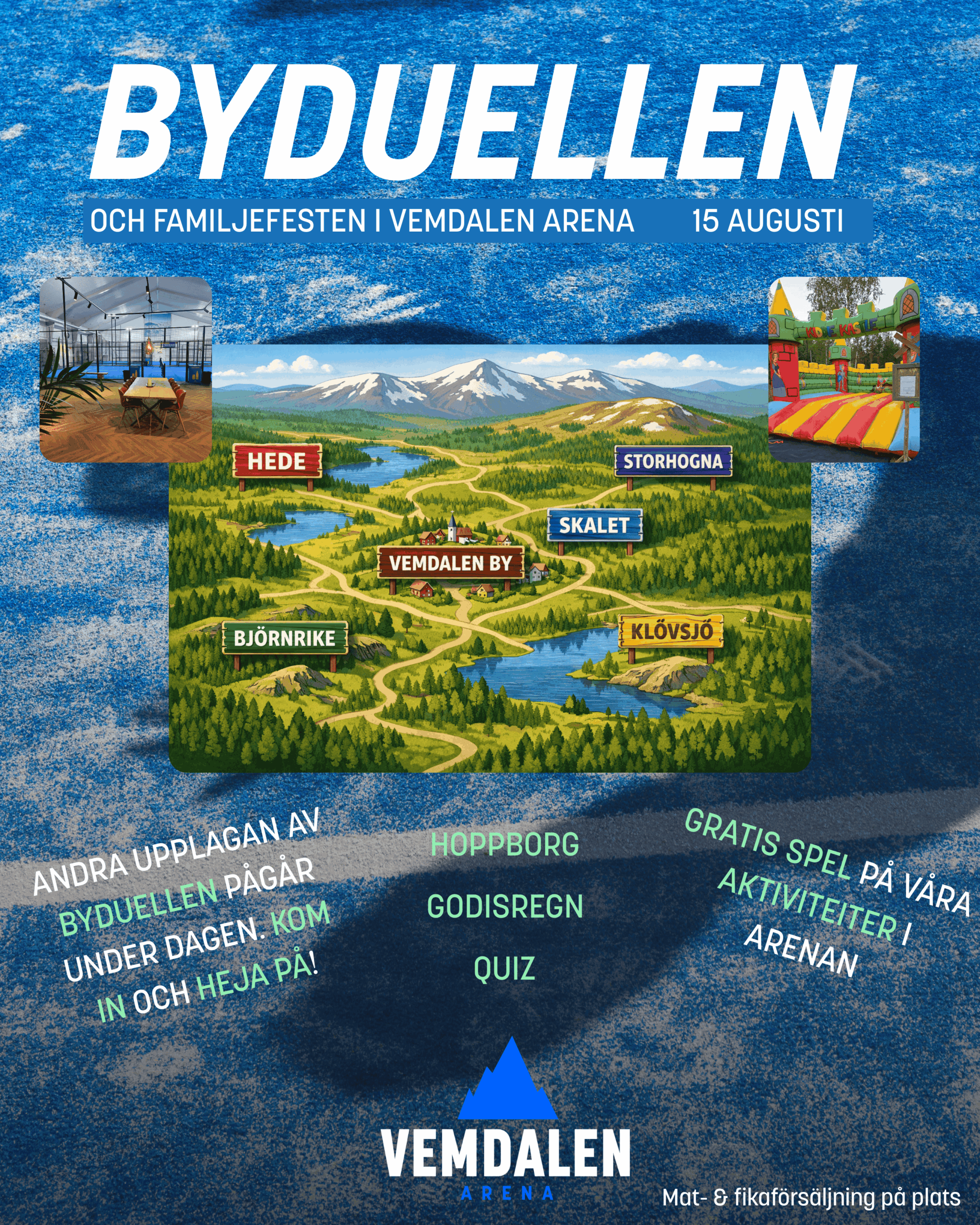 Presigefyllda bykampen på Vemdalen Arena. Familjefest utanför banan med bland annat hoppborg och godisregn. Läs…